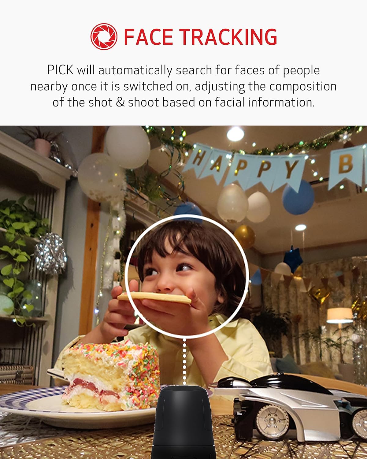 - SMILE TRACKING & AUTOMATIC FILTERING: The PowerShot PICK's advanced algorithm automatically searches nearby faces and adjusts shot composition using its Pan, Tilt, Zoom mechanism based on facial information to capture smiling faces and filters the best shots.