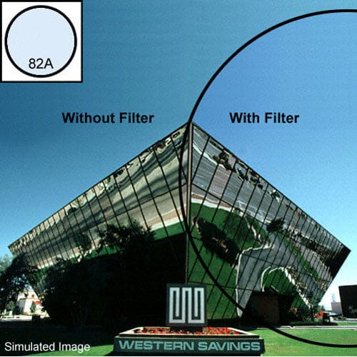 An 82A has a greater "cooling" effect than an 82 but less than an 82B. The 82 series of blue filters allows the photographer to keep skin tones somewhat normal by increasing the color temperature to a more daylight balanced level. In addition, an 82A provides a cooler effect with tungsten film less than 3200K lamps.
